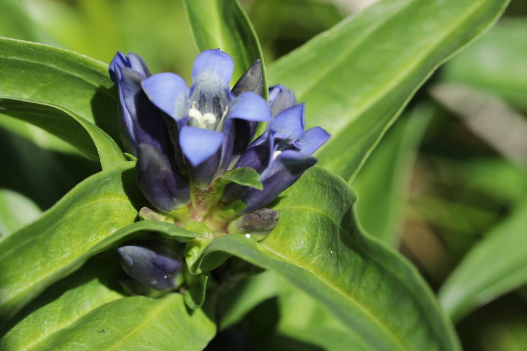 Gentiane croisette Gentiana cruciata L., 1753 & oeuf de l’Azuré de la Croisette Phengaris alcon (Denis & Schiffermüller, 1775) © Diane Sorel