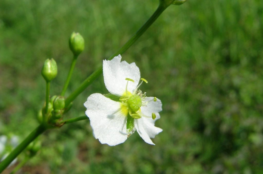 Ses fleurs à trois pétales ronds légèrement irréguliers, blancs ou violet pâle sont très caractéristiques.